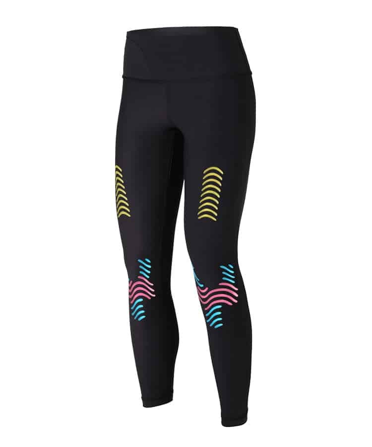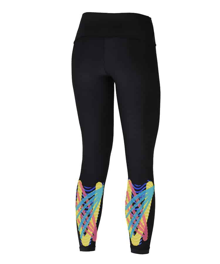 Tape Design & Placement: the tape is integrated into the leggings and its intended effect on muscles and joints..